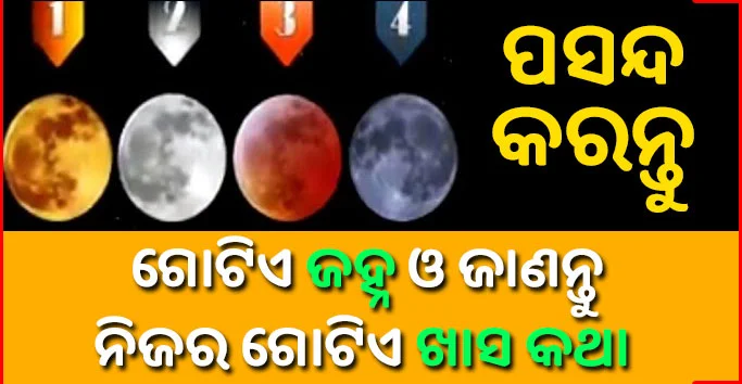 ବନ୍ଧୁଗଣ ଆଜିଆମେ ଆପଣ ମାନଙ୍କୁ ୪ ଟି ଜହ୍ନର ଫଟୋ ଦେଖାଇବୁ ଓ ଆପଣ ସେଥିମଧ୍ୟରୁ ଗୋଟିଏ ଜହ୍ନକୁ ବାଛିବେ । ଆପଣ ବାଛିଥିବା ଜହ୍ନ ଅନୁଯାଇ ଆପଣ ନିଜ ବିଷୟରେ ଏକ ଖାସ କଥା ଜାଣିବେ । ତା ହେଲେ ବନ୍ଧୁଗଣ ଆସନ୍ତୁ ଜାଣିବା ଏହା ବିଷୟରେ ।
