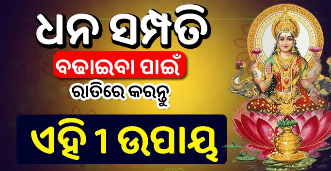 ଯାହାଦ୍ୱାରା ଆପଣଙ୍କ ଜୀବନରେ ଧନର ବର୍ଷା ହେବ ଏବଂ ମାତାଲକ୍ଷ୍ମୀ ଆପଣଙ୍କ ଘରେ ସଦା ସର୍ବଦା ବାସ କରିବେ । ଏହି ଉପାୟଟି କୁ ଆପଣଂକୁ ରାତି ସମୟରେ ପ୍ରୟୋଗ କରିବାର ଅଛି । ତେବେ ଆସନ୍ତୁ ଜାଣିବା ସେହି ଉପାୟ ସମ୍ବନ୍ଧରେ ।