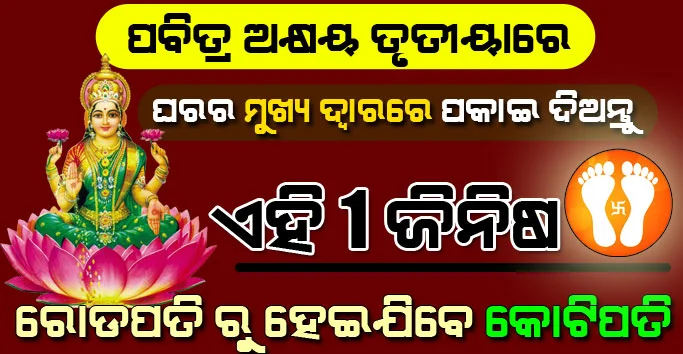 ବନ୍ଧୁଗଣ ଅକ୍ଷୟ ତୃତୀୟା ଦିନ ମାତା ଲକ୍ଷ୍ମୀ ଓ ଭଗବାନ ବିଷ୍ଣୁ ଙ୍କୁ ଆରାଧନା କରାଯାଇଥାଏ । ଏହି ଦିନ ବହୁତ ଶୁଭ ହୋଇଥାଏ ତେଣୁ ଆପଣ ଏହି ଦିନ ପାଞ୍ଜି ନ ଦେଖି ମଧ୍ୟ ଯେ କୌଣସି ମୁହୂର୍ତ୍ତରେ ଚାହିଁଲେ ଶୁଭ କାର୍ଯ୍ୟ କରିପାରିବେ । ଅକ୍ଷୟ ତୃତୀୟା ଦିନ ସକାଳୁ ଉଠି ଘର ର ମୁଖ୍ୟ ଦ୍ୱାର ସମ୍ମୁଖରେ କିଛି ବୁନ୍ଦା ଗଙ୍ଗା ଜଳ ସିଞ୍ଚନ କରି ତାହାପରେ ଝାଡୁ କରନ୍ତୁ । ଏପରି କରିବା ଦ୍ୱାରା ଆପଣଙ୍କ ଘରେ ଯାହା ବି ଦୋଷ ରହିଥାଏ ତାହାର ଅନ୍ତ ହୋଇଯାଇଥାଏ ।