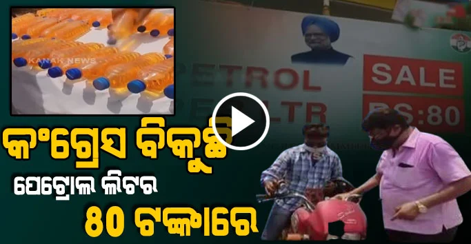 ତୈଳ ଦର ବୃଦ୍ଧି ନେଇ କଂଗ୍ରେସର ନିଆରା ପ୍ରତିବାଦ, ଲିଟର ପିଛା ୮୦ ଟଙ୍କାରେ ପେଟ୍ରୋଲ ବିକୁଛି କଂଗ୍ରେସ, ଦେଖନ୍ତୁ Video