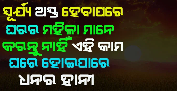 ବନ୍ଧୁଗଣ ମହିଳା ମାନଙ୍କର କିଛି ଏଭଳି କାର୍ଯ୍ୟ ପୁରା ଘରକୁ ବର୍ବାଦ କରିଦେଇଥାଏ । ବିଶେଷ କରି ସନ୍ଧ୍ଯା ସମୟରେ ଯେଉଁ କାମ କରିବାକୁ ବର୍ଜିତ ରହିଥାଏ । ସେହି କାର୍ଯ୍ୟକୁ ଯଦି ମହିଳା ମାନେ କରିଥାନ୍ତି । ତେବେ ତାହାର କୁ-ପ୍ରଭାବ ସଂପୂର୍ଣ୍ଣ ଘର ଉପରେ ପଡିପାରେ । ତେବେ ସୂର୍ଯ୍ୟ ଅସ୍ତ ସମୟରେ ମହିଳା ମାନେ କେଉଁ ସବୁ କାର୍ଯ୍ୟ କରିବାକୁ ବାରଣ କରାଯାଇଛି ଚାଲନ୍ତୁ ଜାଣିବା । 1- ସୂର୍ଯ୍ୟଅସ୍ତ ପରେ ଅର୍ଥାତ ସନ୍ଧ୍ୟା ସମୟରେ ଯଦି କିଏ ଆସି ଘରେ ଦହି ବ କ୍ଷୀର ଜାତୀୟ କିଛି ଜିନିଷ ମାଗନ୍ତି । ତେବେ ତାଙ୍କୁ ଜମାରୁ ମଧ୍ୟ ଦିଅନ୍ତୁ ନାହିଁ । କାରଣ ଏହି କାର୍ଯ୍ୟ ସନ୍ଧ୍ଯା ସମୟରେ କରିବା ଦ୍ଵାରା ଘରୁ ମା’ ଲକ୍ଷ୍ମୀ ଚାଲିଯାଇଥାନ୍ତି ।