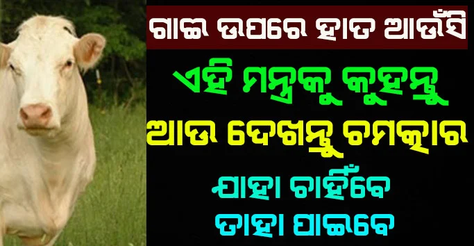 ସର୍ବଦା ଗାଈ ମାନଙ୍କ ପ୍ରତି ମନରେ ଦୟା ଭାବ ଓ ଆଦର ରଖିବା ଉଚିତ । ଯାହା ଦ୍ଵାରା ବ୍ୟକ୍ତିର ଅନେକ ମନୋସ୍କାମନା ମଧ୍ୟ ପୂରଣ ହୋଇଥାଏ । ତେବେ ବନ୍ଧୁଗଣ ଆଜି ଆମେ ଆପଣଙ୍କୁ ଏପରି କଥା କହିବା ପାଇଁ ଯାଉଛୁ । ଯଦି କୌଣସି ବ୍ୟକ୍ତି ଗାଈ ଉପରେ ହାତ ରଖି ଏହି ମନ୍ତ୍ରର ଉଚ୍ଚାରଣ କରିବେ । ତେବେ ତାହା ଅନେକ ପୂଣ୍ୟକର୍ମର ଫଳ ହୋଇଥାଏ ।