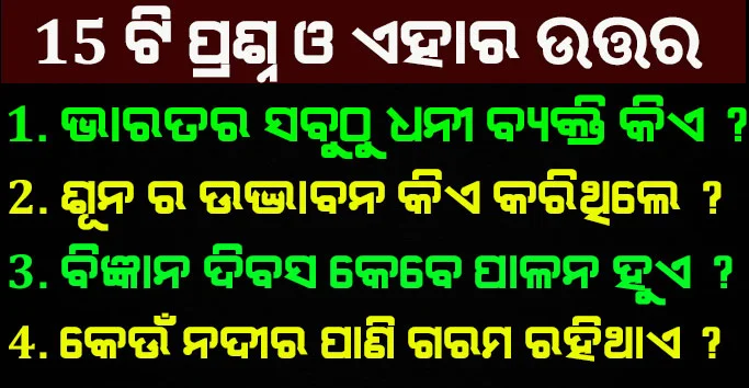 ବନ୍ଧୁଗଣ ଦୁନିଆରେ ଏତେ ସାରା ଜ୍ଞାନପୂର୍ଣ୍ଣ କଥା ଭରି ହୋଇ ରହିଛି । ଯାହାର କଳନା କରିବା ମଧ୍ୟ ସମ୍ଭବ । ହେଲେ ଯଦି ବ୍ୟକ୍ତି ପ୍ରତିଦିନ କିଛି କିଛି ଜ୍ଞାନ ପଢିଥାଏ । ତେବେ ସେହି ବ୍ୟକ୍ତିକୁ ସେହି ସବୁ ଜ୍ଞାନର ଆବଶ୍ୟକତା ସ୍ତଳରେ ବହୁତ ଦରକାର ପଡିଥାଏ । ତେବେ ଆଜି ଆମେ ଆପଣଙ୍କ ପାଇଁ ବଛା ବଛା କିଛି ସାଧାରଣ ଜ୍ଞାନ ନେଇକରି ଆସିଛୁ ।