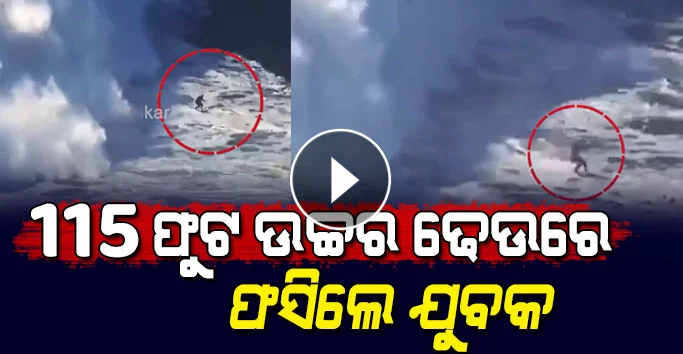୧୧୫ ଫୁଟ ଉଚ୍ଚର ଢେଉରେ ଫସିଲେ ଯୁବକ, ଦେଖନ୍ତୁ କେମିତି ବର୍ତିଲେ ! Video ଦେଖିଲେ ଆପଣ ବି ଭୟରେ ଥରିବେ