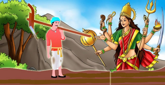 ଗୋଟିଏ ଲୋକ କଥା ଅନୁସାରେ ଜଣେ କୃଷକ ବହୁତ ଚିନ୍ତାଗ୍ରସ୍ତ ହୋଇ ରହୁଥିଲା ଓ ତା’ ଜୀବନରେ ବହୁତ ଦୁଃଖି ଥିଲା । ଥରେ ସେହି କୃଷକର ଗ୍ରାମକୁ ଜଣେ ସନ୍ଥ ଆସିଥିଲେ । କୃଷକ ଜଣଙ୍କ ନିଜର ଚିନ୍ତା ବିଷୟରେ ସନ୍ଥଙ୍କୁ କହିଲା ଓ ଏହି ଚିନ୍ତାରୁ ମୁକ୍ତ ହେବା ପାଇଁ ଉପାୟ ମାଗିଲା । ସନ୍ଥ କୃଷକକୁ ଏକ ମନ୍ତ୍ର ଦେଇ କହିଲେ ଏହି ମନ୍ତ୍ରକୁ ତମେ ସବୁ ଦିନ ଜପ କର । ଏହି ମନ୍ତ୍ରକୁ ଜପ କରିଲେ ତୁମ ସାମ୍ନାରେ ଏକ ଦେବୀ ପ୍ରକଟ ହେବେ ଓ ତମେ ଯାହା ମାଗିବ ତାହା ପୂରଣ ହେବ ।