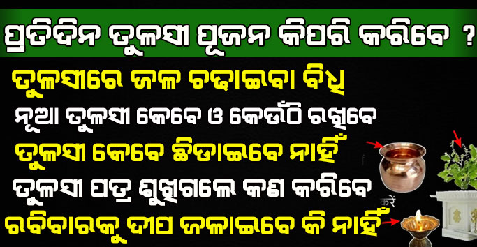 ତୁଳସୀ ବୃକ୍ଷରେ ମାତା ଲକ୍ଷ୍ମୀଙ୍କର ବାସ ହୋଇଥାଏ । ଯେଉଁ ଘରେ ପ୍ରତିଦିନ ସକାଳ ଓ ସନ୍ଧ୍ଯାରେ ଅତି ନିଷ୍ଠାର ସହ ତୁଳସୀ ପୂଜା କରାଯାଇଥାଏ । ସେହି ଘର ଉପରେ ମାତା ଲକ୍ଷ୍ମୀଙ୍କର ଆଶ୍ରୀବାଦ ସଦା ସର୍ବଦା ରହିଥାଏ । ବନ୍ଧୁଗଣ ତୁଳସୀ ପୂଜନ ଆପଣ କେମିତି ଉଚିତ ନିୟମର ସହ କରିବେ ଆସନ୍ତୁ ସେହି ବିଷୟରେ ଜାଣିବା । ସକାଳୁ ଶୀଘ୍ର ସ୍ନାନ ଆଦି କାର୍ଯ୍ୟ ସାରି ସୂର୍ଯ୍ୟଦେବଙ୍କୁ ଜଳ ଅର୍ପଣ କରିସାରିବା ପରେ ମାତା ତୁଳସୀଙ୍କର ପୂଜା କରାଯିବା ଉଚିତ ।