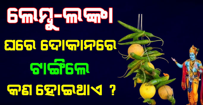 ବନ୍ଧୁଗଣ ଘର କି ଦୋକାନ ସାମ୍ନାରେ ଅନେକ ଲୋକ ଲେମ୍ବୁ ଓ ଲଙ୍କା ଟାଙ୍ଗିଥାନ୍ତି । ହେଲେ ଘର ହେଉ ଅବା ଦୋକାନ ଯେଉଁ କୌଣସି ସ୍ଥାନରେ ଲେମ୍ବୁ ଓ ଲଙ୍କା ଟାଙ୍ଗିବାର ମହତ୍ଵ କଣ ଆପଣ ମାନେ ଜାଣିଛନ୍ତି । ତେବେ ବନ୍ଧୁଗଣ ଲେମ୍ବୁ ଓ ଲଙ୍କା ଟାଙ୍ଗିବାର ପ୍ରକୃତ ଅର୍ଥ କଣ ଚାଲନ୍ତୁ ଏଠାରେ ଜାଣିବା । ଘରେ ହେଉ ଅବା ଯେକୌଣସି ସ୍ଥାନରେ ଲେମ୍ବୁ ଓ ଲଙ୍କା ଟାଙ୍ଗିବାର କାରଣ କିଛି ଏମିତି ଅଛି । ବନ୍ଧୁଗଣ ମା’ ଲକ୍ଷ୍ମୀ ଓ କୁଲକ୍ଷ୍ମୀ ଶୟନ ସମୟରେ ସମସ୍ତଙ୍କ ଘରକୁ ଆସିଥାନ୍ତି ।