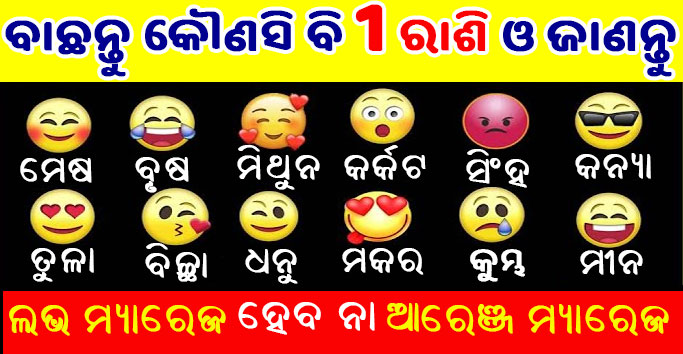 ବାଛନ୍ତୁ ନିଜ ରାଶି ଅନୁସାରେ ଗୋଟେ ଇମୋଜି, ଜାଣନ୍ତୁ ଆପଣଙ୍କର Love ମ୍ୟାରେଜ ହେବ ନା Arrange Marriage