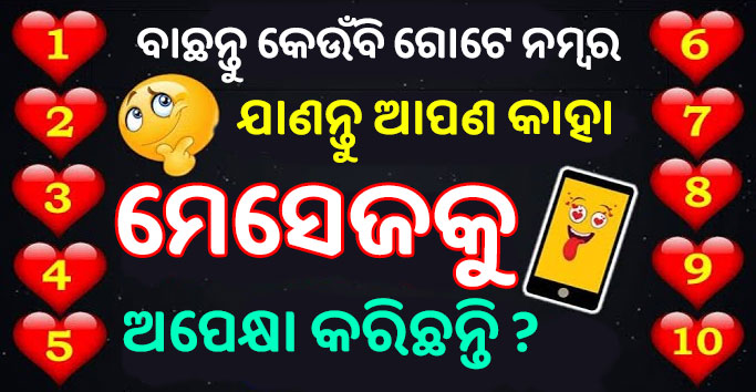 ବାଛନ୍ତୁ କେଉଁବି ଗୋଟେ ନମ୍ବର ଓ ଯାଣନ୍ତୁ ଆପଣ କାହା ମେସେଜକୁ ଅପେକ୍ଷା କରିଛନ୍ତି ! – Personality Test