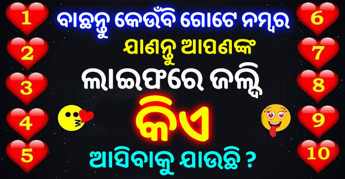 ବାଛନ୍ତୁ ନିଜ ପସନ୍ଦର କୌଣସି ଗୋଟିଏ ନମ୍ବର ଓ ଜାଣନ୍ତୁ ଆପଣଙ୍କ ଲାଇଫ ରେ ବହୁତ ଜଲ୍ଦି କିଏ ଆସିବାକୁ ଯାଉଛନ୍ତି ? Love Quiz Game