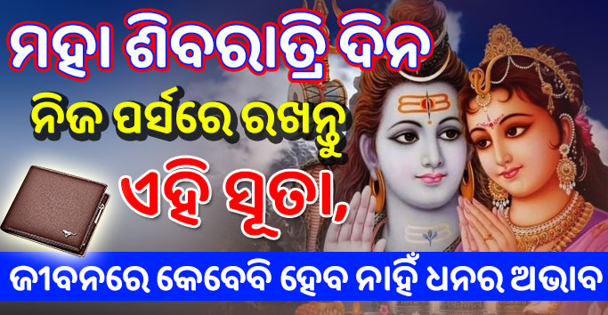 ଆପଣ ମାନେ ଜାଣିଥିବେ ଆଉ କିଛି ଦିନ ଭିତରେ ହେବାକୁ ଯାଉଛି ମହା ଶିବରାତ୍ରି ବା ଜାଗର । ଏହି ଦିନରେ ଲୋକ ମାନେ ମହାଦେବଙ୍କୁ ବହୁତ ଧୁମ ଧାମରେ ପୂଜା କରିଥାନ୍ତି । ଆଜି ଆମେ ଆପଣଙ୍କୁ କହିବୁ କେବଳ ଆପଣ ନିଜ ମନୀ ପର୍ସରେ ଗୋଟିଏ ସୂତା ରଖିବା ଦ୍ଵାରା ନିଜର ବହୁତ ଲାଭ ହେବ ଓ ଆପଣଙ୍କ ଜୀବନରେ ଆଉ କେବେ ହେଲେ ଧନର ଅଭାବ ଦେଖା ଦେବ ନାହିଁ । ତେବେ ଆସନ୍ତୁ ଜାଣିବା ସେହି ଜିନିଷ ବିଷୟରେ ଓ ଏହାକୁ ରଖିବା ଫଳରେ ଆପଣଙ୍କର କେଉଁ ସବୁ ପରିବର୍ତନ ହେବ ।