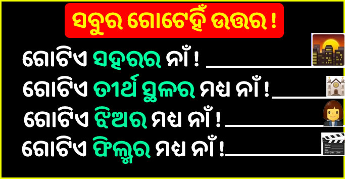 Gk Questions & Answers- କୁହନ୍ତୁ ତାହା କଣ ? ଯାହା ଗୋଟିଏ ସହରର ନାମ, ଗୋଟିଏ ତୀର୍ଥସ୍ଥଳ ର ନାମ, ଗୋଟିଏ ଫିଲ୍ମ ର ନାମ ?