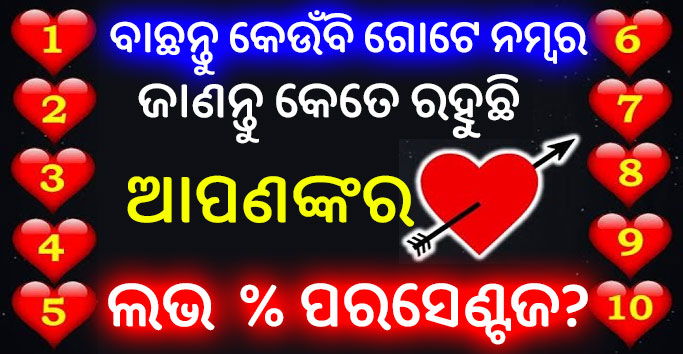 ବାଛନ୍ତୁ ନିଜ ପସନ୍ଦର କୌଣସି ଗୋଟିଏ ନମ୍ବର ଓ ଜାଣନ୍ତୁ କେତେ ରହୁଛି ଆପଣଙ୍କ ଲଭ ପରସେଣ୍ଟେଜ Love Quiz Game