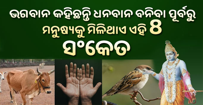ଭଗବାନ ଶ୍ରୀକୃଷ୍ଣ କହିଛନ୍ତି ଯେଉଁ ସମୟରେ ଲୋକଙ୍କର ଭଲ ସମୟ ଆସିଥାଏ ସେହି ସମୟରେ ତାଙ୍କୁ କିଛି ସଂକେତ ଆସିଥାଏ କି ଯାହା ତାଙ୍କୁ ସୁଚାଇ ଥାଏ ସେମାନଙ୍କର ଆଉ କିଛି ଦିନ ଭିତରେ ବହୁତ ଭଲ ସମୟ ଆସିବାକୁ ଯାଉଛି । ଯେଉଁ ସମୟରେ ମନୁଷ୍ୟର ଭଲ ହେବାକୁ ଥିବ ସେହି ସମୟରେ ପ୍ରକୃତି ଦ୍ଵାରା ତାକୁ କିଛି ସଙ୍କେତ ମିଳିଥାଏ । ଯେଉଁ ମନୁଷ୍ୟ ଏହି ସଙ୍କେତକୁ ବୁଝିପାରେ ସେମାନଙ୍କର ହେଉଥିବା ଖରାପ କାର୍ଯ୍ୟ ଓ କିଛି ହେଉଥିବା ଅସୁବିଧାକୁ ସେମାନେ ବହୁତ ସହଜରେ ସେଥିରୁ ମୁକ୍ତି ପାଇଥାନ୍ତି ।