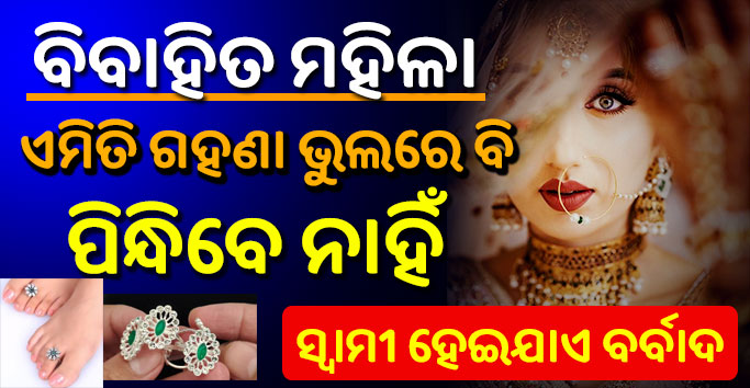 ଅନ୍ୟଥା ଘରେ ଦ୍ଵେସ , କ୍ଲେଶ , ଚିନ୍ତା ଓ ଅଶାନ୍ତି ସୃଷ୍ଟି ହୋଇଥାଏ ଏବଂ ଘରର ସୌଭାଗ୍ୟ ଦୁର୍ଭାଗ୍ୟ ରେ ପରିଣତ ହୋଇଯାଏ । ଆଜି ଆମେ ଜାଣିବା ବିବାହିତ ମହିଳାଙ୍କୁ କେଉଁ ପ୍ରକାରର ଗହଣା ପିନ୍ଧିବା ଉଚିତ ନୁହେଁ ।