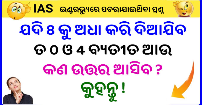 Gk Questions & Answers- ଯଦି 8 କୁ ଅଧା କରି ଦିଆଯିବ ତ 0 ଓ ୪ ବ୍ଯତୀତ ଅନ୍ୟ କେଉଁ ସଂଖ୍ୟା ଆସିବ ?