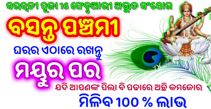 ଆସନ୍ତା କାଲି ପବିତ୍ର ‘ବସନ୍ତ ପଞ୍ଚମୀ’, ଘରର ଏହି ସ୍ଥାନରେ ରଖି ଦିଅନ୍ତୁ ଗୋଟିଏ ମୟୁର ପର, ଯଦି ଆପଣଙ୍କ ପିଲା ବି ପଢାରେ ଅଛି କମଜୋର ମିଳିବ 100 % ଲାଭ