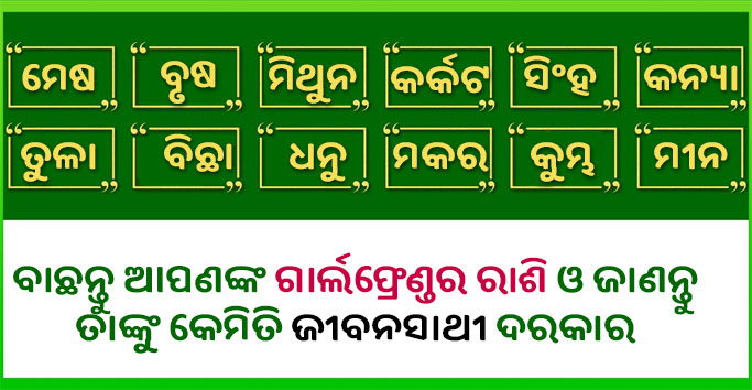 ବାଛନ୍ତୁ ନିଜ ଗର୍ଲ ଫ୍ରେଣ୍ଡଙ୍କ ରାଶି ଓ ଜାଣନ୍ତୁ ସେ ଜୀବନରେ କିପରି ଜୀବନସାଥୀ ପାଇବାକୁ ଚାହାଁନ୍ତି ? Love Quiz Game