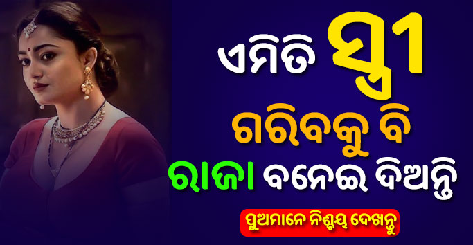 ଏମିତି ବି କିଛି ସ୍ତ୍ରୀ ଅଛନ୍ତି ଯେଉଁ ମାନେ ସ୍ବାମୀର ଜୀବନରେ ଦୁଃଖ ଭରି ଦିଅନ୍ତି ଯାହା ପାଇଁ ମଣିଷ ଜୀବନରେ ଅବନତି କରେ ତେବେ ଆଜି ଆସନ୍ତୁ ଜାଣିବା ଏଭଳି କିଛି ଝିଅ ମାନଙ୍କ ଲକ୍ଷଣ ବିଷୟରେ । କେଉଁ ଗୁଣ ଥିଲେ ଝିଅଟି ସ୍ଵାମୀର ଉର୍ଣ୍ଣତି କରାଏ । ଯେଉଁ ଘରର ସ୍ତ୍ରୀ ସବୁ ବେଳେ ପରିଷ୍କାର ରୁହେ । ମନ ଲଗାଇ ଭଗବାନଙ୍କ ପୂଜା କରେ ସେ ଭଲୀ ସ୍ତ୍ରୀ ଲୋକଙ୍କ ସ୍ଵାମୀ ମାନେ କେବେବି ଦରିଦ୍ର ହୁଅନ୍ତିନି ।