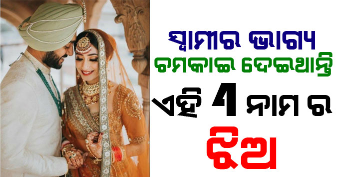 ଏହା ପରେ ମଣିଷ ନିଜ ଜୀବନର ନୂଆ ଦିଗରେ ଗତି କରିଥାଏ । କିଛି ବ୍ୟକ୍ତିଙ୍କ ଜୀବନରେ ବିବାହ ପରେ ଅନେକ ଖୁସି ଆସିଥାଏ । ଏହାର ସବୁ ଶ୍ରେୟ ସେହି ବ୍ଯକ୍ତିର ସ୍ତ୍ରୀ ବା ତାର ଧର୍ମପତ୍ନୀକୁ ମାନାଯାଏ । ଏମିତି କିଛି ଝିଅ ମାନେ ଅଛନ୍ତି ଯେଉଁ ମାନେ ବିଭା ପରେ ନିଜ ସ୍ବାମୀର ଭାଗ୍ୟକୁ ବଦଳାଇ ଦେଇଥାନ୍ତି । ଆଜି ଆମେ ଆପଣ ମାନଙ୍କୁ ଏମିତି ୪ଟି ନାମ ଥିବା ଝିଅ ମାନଙ୍କ ବିଷୟରେ କହିବାକୁ ଯାଉଛୁ ଯେଉଁ ମାନେ ବିବାହ ପରେ ନିଜ ସ୍ବାମୀର କିସ୍ମତ ବଦଳାଇ ଦେଇଥାନ୍ତି ।