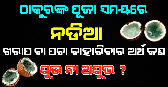 ଯେତେବେଳେ ପୂଜାରେ ବ୍ୟବହାର ହୋଇଥିବା ନଡିଆଟି ଶୁଖିଲା କି ଖରାପ ବାହାରିଥାଏ । ସେତେବେଳେ ଅନେକ ଲୋକ ତାହାକୁ ଅଶୁଭ ବୋଲି ମାନିନେଇଥାନ୍ତି । ହେଲେ ପ୍ରକୃତରେ ଯଦି ଏଠାରେ କହିବ । ତେବେ ପୂଜାରେ ଯଦି ବ୍ୟବହାର ହୋଇଥିବା ନଡିଆଟି କୌଣସି ସମୟରେ ଖରାପ ବାହାରୁଛି । ତେବେ ସେଥିପ୍ରତି ଜମାରୁ ମଧ୍ୟ ବ୍ୟସ୍ତ ହୋଇ ପଡନ୍ତୁ ନାହିଁ ।