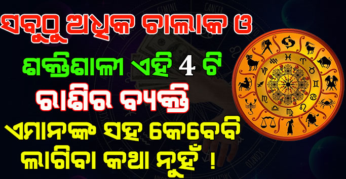 ସବୁଠୁ ଅଧିକ ଚାଲାକ ଓ ଶକ୍ତିଶାଳୀ ହୋଇଥାନ୍ତି ଏହି 4 ଟି ରାଶି ! ଏମାନଙ୍କ ସହ ଲାଗିବା କଥା ନୁହେଁ ! Astrology