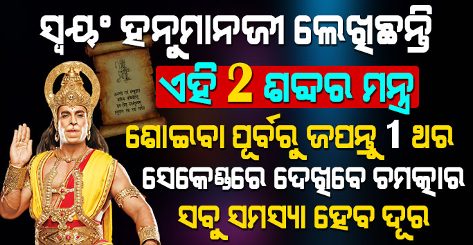 ଯଦି ଆପଣ ନିଜ ଜୀବନରୁ ଦୁଃଖ କଷ୍ଟ ଦୂରେଇ ଦେବାକୁ ଚାହୁଁଥାନ୍ତି ତେବେ ଆପଣ ପ୍ରତ୍ୟକ ଦିନ ରାତିରେ ହନୁମାନଙ୍କ ଏହି ମନ୍ତ୍ର ଉଚ୍ଚାରଣ କରି ସୁଅନ୍ତୁ । ମନ୍ତ୍ର ବହୁତ ପ୍ରଭାବଶାଳି ହୋଇଥାଏ । ମନ୍ତ୍ରର ଉଚ୍ଚାରଣ ଫଳରେ ଏହାର ସୁପ୍ରଭାବ ଆମ ଉପରେ ପଡିଥାଏ ।