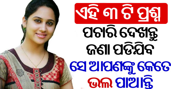 ଆଜି ଆମେ ଆପଣଙ୍କୁ ଏମିତି ତିନୋଟି ପ୍ରଶ୍ନ କହିବୁ, ଯାହାକୁ ଆପଣ ନିଜ ପାର୍ଟନରକୁ ପଚାରି, ଜାଣିପାରିବେ କି ସେ ଆପଣଙ୍କୁ କେତେ ଭଲ ପାଉଛନ୍ତି । ଏହି ତିନୋଟି ପ୍ରଶ୍ନ ସାଇକୋଲୋଜିର ଅଟେ, ତେଣୁ ଭଲ ଭାବରେ ଏହି ପ୍ରଶ୍ନ ବିଷୟରେ ବୁଝିଯାନ୍ତୁ । ସାଧାରଣତଃ ଆଜିକାଲି ପ୍ରେମୀ ଯୁଗଳ ବା ବୈବାହିକ ଜୀବନରେ ବହୁତ ବାଦବିବାଦ ସୃଷ୍ଟି ହେଉଛି । ଯାହାଫଳରେ ସେମାନେ ଅଲଗା ହୋଇଯାଉଛନ୍ତି ।