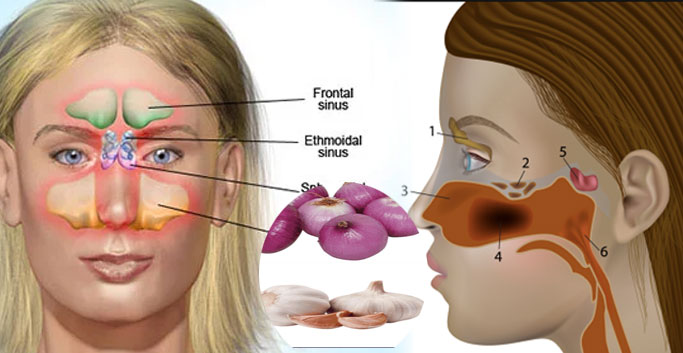 ଗୋଟେ ଛୋଟ ପିଆଜ ଓ ରସୁଣ କୁ ଏକା ସାଙ୍ଗରେ କୁଟି କି ଗରମ ପାଣିରେ ଫୁଟେଇ ତାର ବାମ୍ଫ ନେଲେ ସାଇନସର ମୁଣ୍ଡ ବିନ୍ଧା କମିଥାଏ । ଗରମ କପଡା ବା ଗରମ ପାଣି ବୋତଲ ଗାଲରେ ସେକନ୍ତୁ । ଏହା ଗୋଟେ ମିନିଟ ଦିନକୁ 3 ଥର କରନ୍ତୁ । ନିୟମିତ ଖାଦ୍ୟରେ ମଧ୍ୟ ପିଆଜ ଓ ରସୁଣ ଖାଇଲେ ଉପକାର ହେଇଥାଏ ।